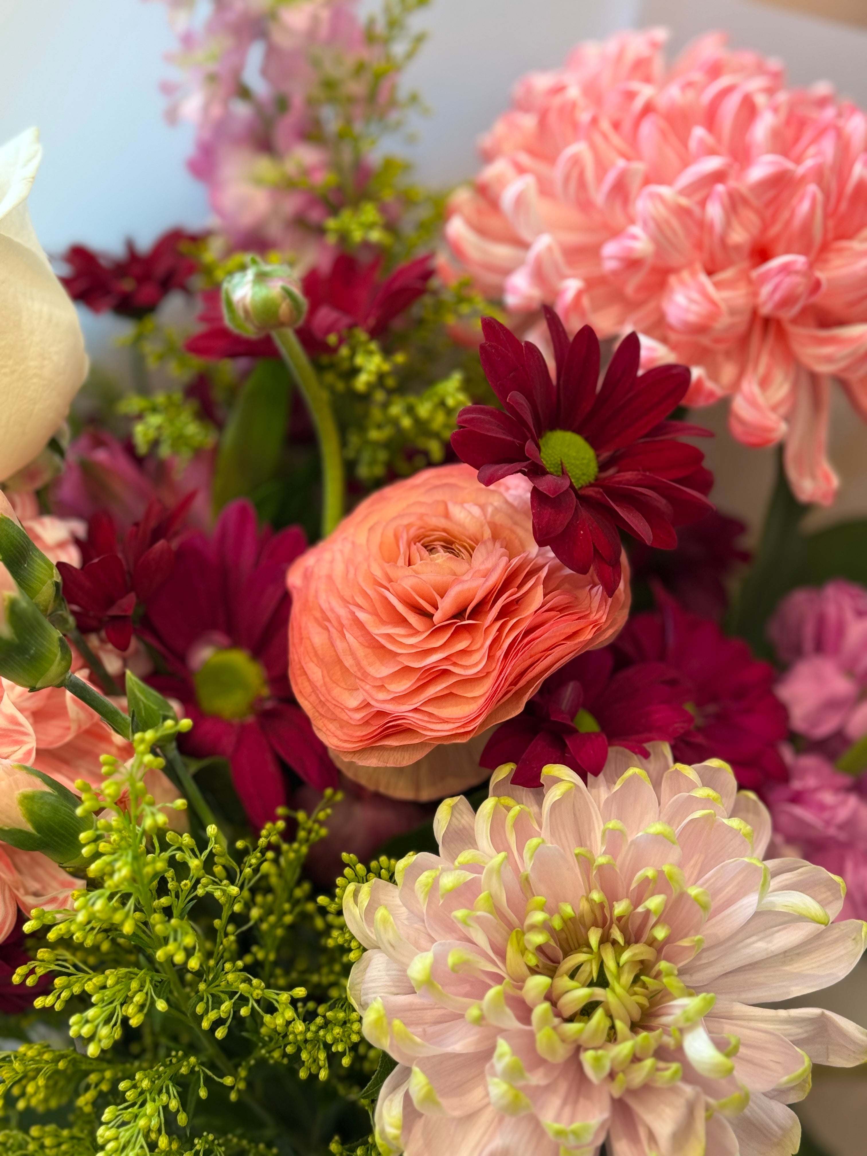 - Each bouquet is crafted with the freshest seasonal blooms available.